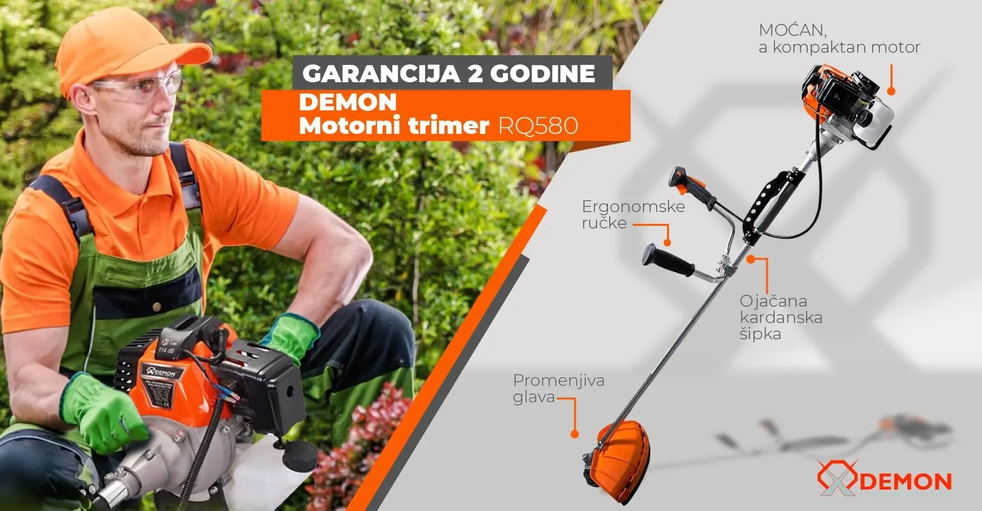 Demon trimer koji je dostupan na našem tržištu dolazi u izvedbi od 1.4KW ili u konjskim snagama 2ks. Po poređenju fabričkih specifikacija, najnoviji model je snažniji od svog prethodnika za oko 15%, što je sjajno, iako nije bilo pritužbi na snagu prethodne verzije. Ovde do izražaja dolazi i ojačana kardanska šipka koja služi da se ta snaga lakše prenese do glave trimera i čini da trimer lakše radi košenje trave bez gubljenja snage u gustoj travi.