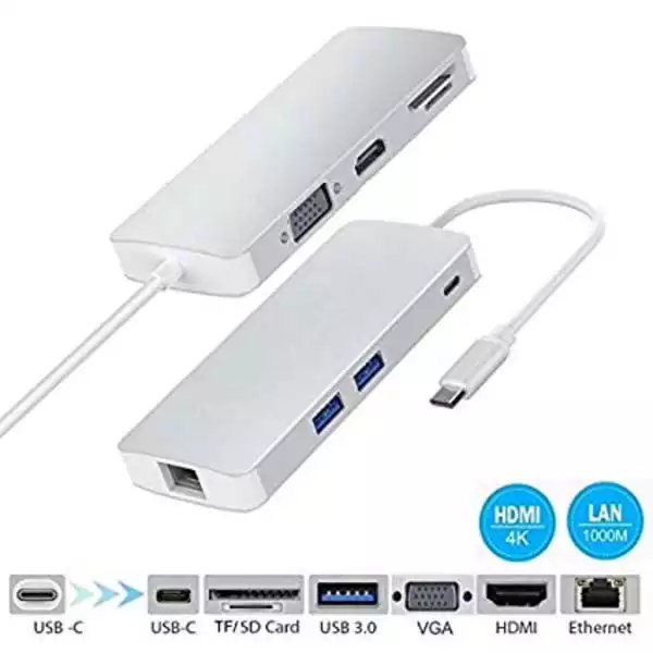 Adapter-konverter USB Tip C 3.1 na VGA/HDMI/2xUSB 3.0/SD/Type C/LAN Linkom